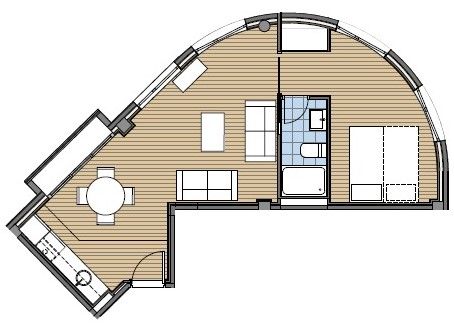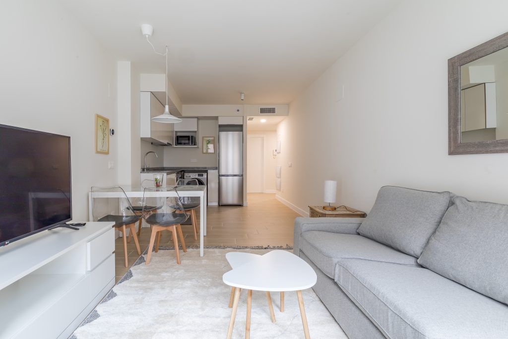 Vivienda de 49.55 m², compuesta por una cocina abierta al salón, un dormitorio y un baño. Su diseño moderno, confortable y de gran calidad hacen de este apartamento el ideal para pasar largas temporadas